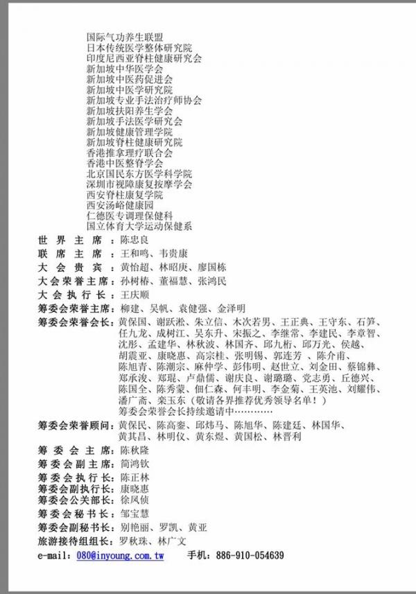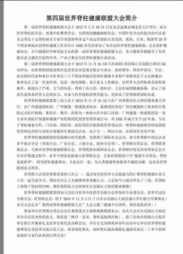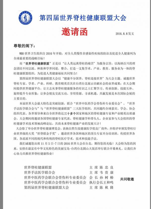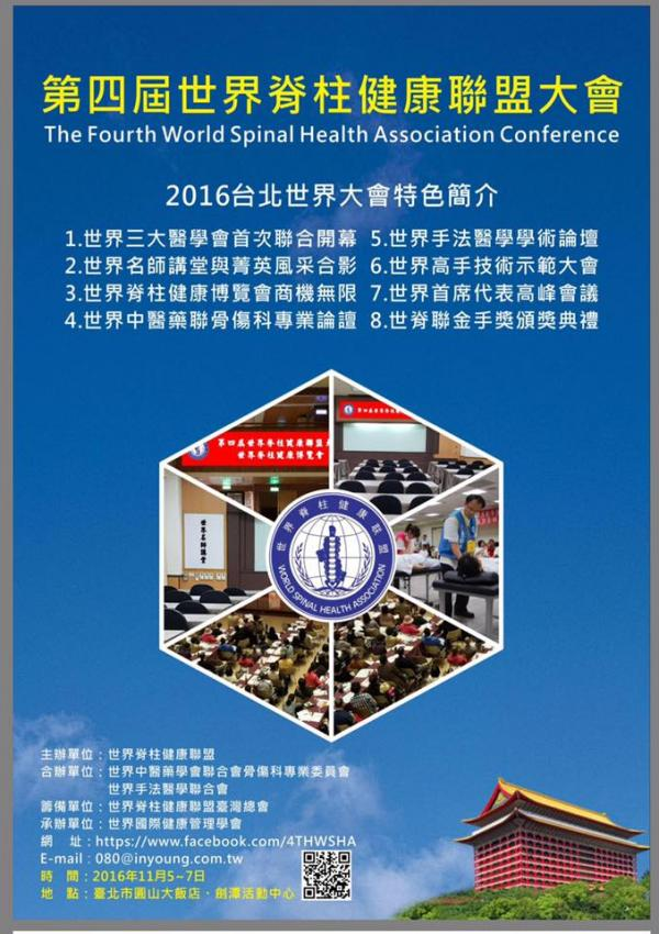 Home最新资讯总会活动第四届世界脊柱健康联盟大会 总会活动 第四届世界脊柱健康联盟大会 October 19, 2016 ShareFacebookTwitterWhatsAppLinkedinTelegramCopy URL 第四届世界脊柱健康联盟大会将在11月5日至7日在台湾盛大举行,大马医总将组团出席参与,目前已经有四十余名注册会员报名参加,欢迎有兴趣参与者,联系马来西亚脊柱健康联盟总会秘书长邱炜马医师(016-770 3213) ShareFacebookTwitterWhatsAppLinkedinTelegramCopy URL Previous article2016年传统辅助医药法令说明会Next article南洋商报 相关文章 总会活动 大马医总与中国南宁市第七人民医院签署合作协议暨“朱琏针灸海外研究基地”挂牌仪式 December 6, 2017 总会活动 黄保国博士当选世界针灸学会联合会执委 December 3, 2017 总会活动 2017光明良医出巡活动,首站本周日226在雪州仁嘉隆登场 (医总中医义诊) February 25, 2017 - Advertisment - 热门文章 第十届(2025-2028)理事会 April 12, 2026 第九届(2022-2025)理事会 April 12, 2026 第八届(2019-2022)理事会 April 12, 2026 第七届(2016-2019)理事会 April 12, 2026Load more